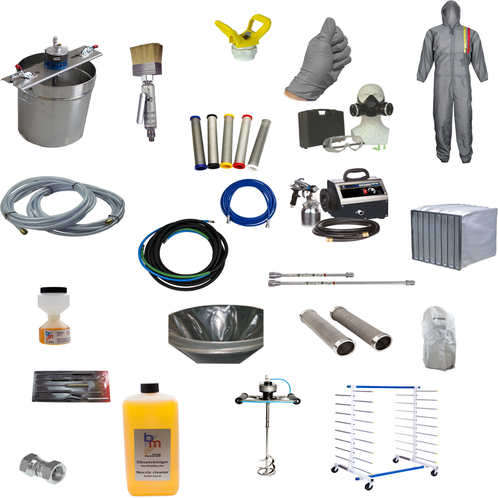 Rührwerke, Materialschläuche, Filtermatten, Atem- und Personenschutz. Alles, was man rund um das Lackieren brauchte und noch vieles mehr.