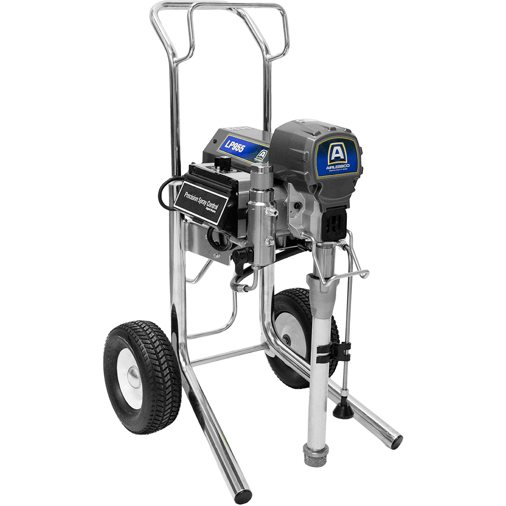 Dank ihres robusten, kompakten und ausbalancierten Rahmens sind Spritzgeräte der Reihe LP optimal geschützt und lassen sich leicht transportieren. Die Pumpe ist das Herzstück eines jeden Airless-Spritzgerätes – diese sind mit Airlesscos neuer Pro-Duty-Quick-Repair-Pumpe mit extern verstellbaren Dichtungen ausgestattet, was Arbeit ohne Unterbrechung gewährleistet. Der ventilatorgekühlte Gleichstrommotor sorgt für zuverlässige Leistung – Tag für Tag. Das LP955 ist nur als Hiboy-Modell verfügbar.