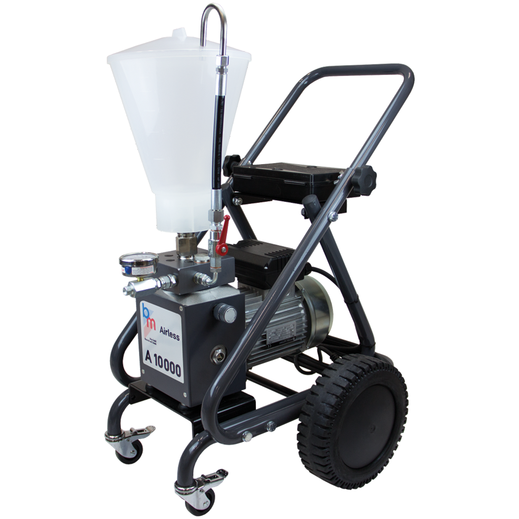 Die b&m A 10000 VP ist ein Hochdruckgerät mit einem Arbeitsdruck von bis zu 230 bar. Das Gerät ist erhältlich optional in Aluminium oder in Edelstahl. VA ist besonders beim Einsatz von alkalischen oder aggressiven Medien das Material der Wahl für eine lange Lebensdauer. Aufgrund des Lichtstromanschlusses einsetzbar an jeder Baustelle ohne zusätzliche Druckluft. Die Geräte eignen sich optimal zur Injektion bzw. Risssanierung mit PUR-Harzen, Epoxidharzen, Silikaten, Schwammschutzmitteln und Holzschutzmitteln. Ein Einlassventil mit Ventiltupfer vereinfacht die Inbetriebnahme, auch wenn der Ventilkegel einmal verklebt sein sollte. Der Arbeitsdruck ist am Druckregler des Gerätes stufenlos von 0 – 230 bar einstellbar. Die Geräte im Fahrwagen erlauben einen bequemen Transport, durch die großen Räder auch über Treppen. Der Fahrwagen verfügt über ein integriertes Werkzeugfach für Düsen, Filter, Packer etc.