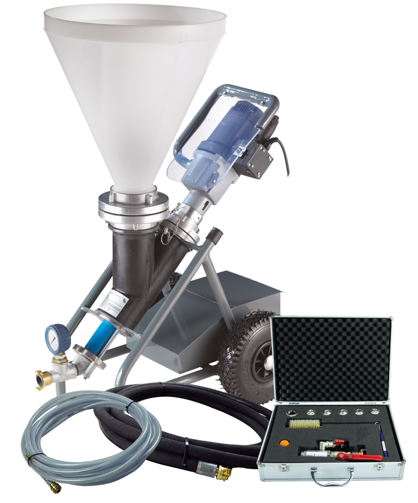 Das Universalgerät der Wahl in der Bausanierung ist die Schneckenpumpe BMP 6. Dieses Gerät ist ideal für die Verarbeitung von allen mineralischen