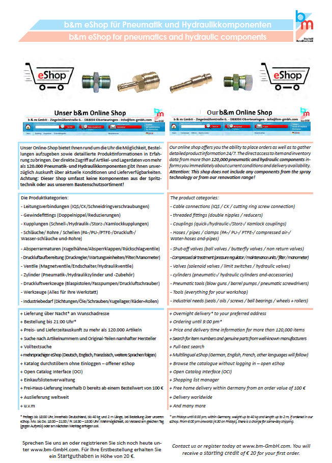 Besuchen Sie jetzt unseren neuen Pneumatikshop b&m GmbH Material und ...